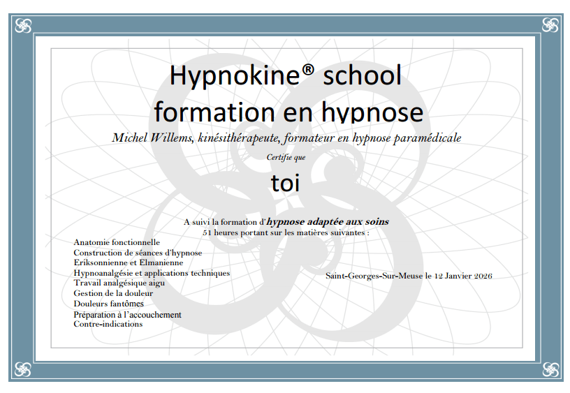 Découvrez une méthode éprouvée pour intégrer l’hypnose thérapeutique dans vos soins quotidiens, encadrée par Michel Willems, kinésithérapeute & hypnothérapeute.